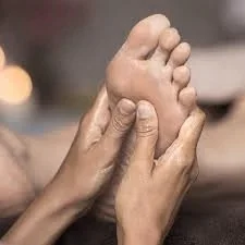 A system of applying pressure, usually to the feet, which practitioners believe stimulates energy and releases blockages in specific areas that cause pain